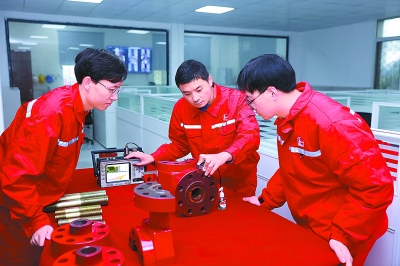2023年,第五批国家专精特新“小巨人”企业名单陆续公布。石化机械荆州市世纪派创石油机械检测公司入选。 石化机械世纪派创公司持续深耕非常规油气资源开发装备的安全可靠性检测领域,梳理技术体系,整合业务线条和资质资源,创新检测技术和服务理念,实施设备全生命周期管理和“检验检测+在线监测+安全评估”一体化服务解决方案,全力打造技术先导型国内一流龙头检验检测公司。图为技术人员在做管汇检测新技术试验。卢 鹏 图/文