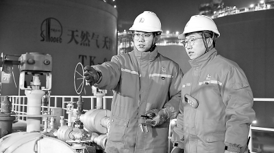 春节期间,天然气需求大幅增加,天然气分公司天津LNG接收站100多名员工日夜坚守,严格落实集团公司“百日安全无事故”行动工作安排。工作人员24小时不间断巡检,安排专人巡护特护关键设备和盲死角、易冻等部位。同时,与地方各职能部门密切联动,配备应急专班,严密监控设备运行状态和关键运行参数,全力确保天然气平稳供应。 王 军 摄