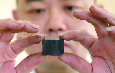 刘晨手持岩片,思考着下一步的打磨方案。作为一个长年与泥水打交道的“手艺人”,他十分注意保护自己的手,但指甲缝和皮肤的纹理间,始终是乌黑的。