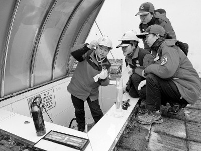 为提高员工数质量业务水平,贵州黔东南施秉石油落实“师带徒”,做好“传帮带”。加油站站长利用空余时间,为员工现场讲解数质量业务知识,并提高他们测量、观温等业务能力。图为3月6日,施秉城关站站长(左)为员工讲解如何测量柴油的温度值。 吴贤军 摄 吴 毅 文