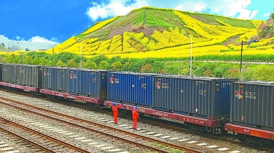 硫黄是生产农业化肥的重要原料。春耕开启之际,中原油田普光气田加强与炼销公司等合作,发挥专列运量大、运输快、效率高优势,加快硫黄出厂速度,截至目前,今年已通过专列运输硫黄18.6万吨,同比增加24.5%。图为3月11日,工作人员对硫黄专列进行发车前安全检查。