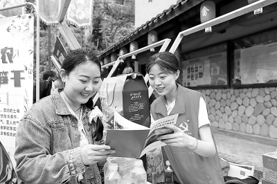 4月13日,浙江丽水石油组织青年志愿者前往浙江省丽水市千峡湖第四届“三月三”文化节,化身“文旅推介官”,向游客介绍周边住宿、特色景点、农产品及游玩攻略,并帮助售卖当地特色农产品笋干,以实际行动助力乡村振兴。图为志愿者向游客介绍活动内容。张小凤 摄 练金燕 文