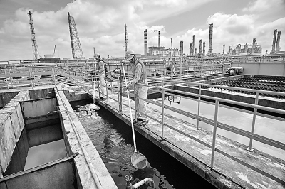 今年以来,茂名石化以节水增效为目标,着力提高回用水循环利用率,降低新鲜水耗量,大力推动节水机制创新。今年前3个月,茂名石化工业取水量同比下降16.03%,节约新鲜水271.3万吨。图为4月10日,员工在现场监控新鲜水质量。柯裕清 摄 张木旺 文
