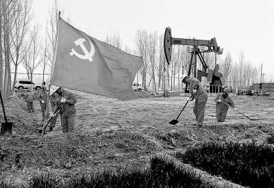 中原油田濮城采油厂强化党员责任区管理,充分发挥党员模范带头作用,组织党员干部到现场抓生产,到一线解难题。图为4月23日,濮城采油厂采油管理四区党支部组织党员到卫79-28井现场平整井场。赵奕松 摄 邓金玲 文