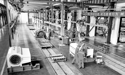 近日,中国首艘集成式全电驱压裂船开工建造。石化机械四机公司自主研制的智能化全电驱船载压裂作业系统,涵盖供配电系统、电驱压裂橇等100余台设备将在该船应用,为该船提供重要装备保障。图为5月6日四机公司压裂船部件装配现场。 李国荣 摄
