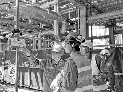 大检修期间,上海石化充分发挥广大青年的生力军作用,结合装置检修任务成立青年突击队,明确目标任务,加强现场培训,助力推进标准化工地建设,切实提升检修效率、质量和安全管理水平。图为5月12日,炼油部青年员工参与检修现场安全监护培训。 罗佳林 摄 陈思琪 文
