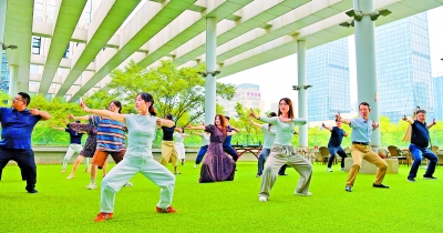 华东石油工程公司科技发展分公司通过健康工间操,提振员工精气神。图为员工在工余时间打八段锦。郑以萍 摄