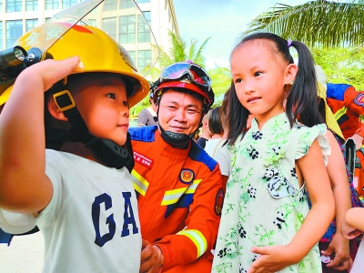 6月4日,海南炼化消防队走进海南省儋州市洋浦第五幼儿园,为孩子们讲解消防安全知识。 邱元广 摄