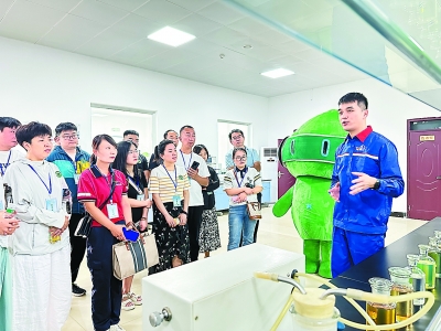 6月26日,河南开封石油举办“探秘智慧能源,解锁安全密码”公众开放日活动。30余名社会公众走进开封油库,详细了解油品检验、收发油作业、油气回收、污水处理等流程和关键质量指标的监测方式,互动体验劣质油品的鉴别方法。该活动架起了企业与社会大众沟通交流的桥梁,充分展示了智慧石化、绿色石化、安全石化的魅力。大家漫步在绿意盎然的现代化油库,纷纷为绿色油库建设点赞。 图为开封油库技术人员向社会公众讲解油品知识。田亚雯 摄 徐建伟 文