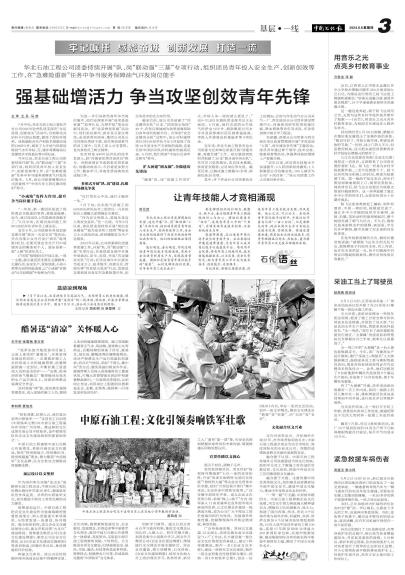 华北石油工程公司团委持续开展“队、岗”联动强“三基”专项行动,组织团员青年投入安全生产、创新创效等工作,在“急难险重新”任务中争当服务保障油气开发岗位能手