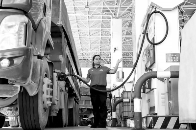 安徽池州石油深入研判市场形势,摸清国省道线路车流变化和站点汽柴油销售占比波动情况,动态优化营销策略,实现量效齐增。7月份,该公司率先完成百日攻坚创效专项行动目标任务,汽柴油销量完成率排名省公司第二,销量同比增长6%。图为马衙加能站员工为客户加注柴油。孙宗奎 摄