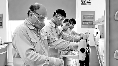 今年以来,上海石化全面推进水质检验业务降本增效,积极推动水质检验工作外包转自干,于近期组织开展第二阶段的员工实操培训,实现班组人员岗位互通,高效做好水质检验工作。图为员工进行水质分析实操培训。徐若舜 摄