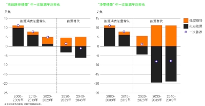 “当前路径情景”中一次能源年均变化 “净零情景”中一次能源年均变化