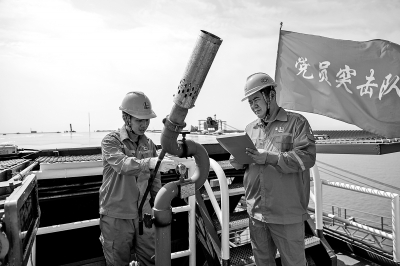 连日来,渤海湾地区高温降雨天气增多。胜利油田海洋采油厂聚焦海上平台本质安全,发挥党员先锋模范作用,依托党员示范岗、责任区、突击队,组织党员干部带头对平台进行全方位、立体化风险隐患排查,确保平台设备设施保持“健康”状态。图为8月16日,中心三号平台党员正在检查消防设备设施。张 灿 摄