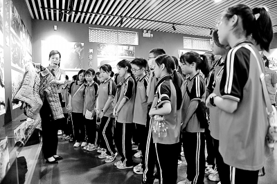 近日,河南油田组织“石化圆梦 扬帆启航”结对帮扶游学活动,来自信阳光山县北向店中学的54名师生来到油田,参观了油田文化馆、魏四井、钻井培训中心等地,了解油气能源科学知识和油田发展历程,拓宽视野的同时也丰富了暑期生活。图为学生们在油田文化馆参观。 戚剑峰 摄