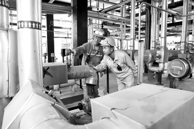 为做好新入职员工培训工作,齐鲁石化橡胶厂制订“一对一”上岗培训计划,落实“双导师”带徒制度,强化岗位锻炼,促进青年员工成长成才。图为9月4日,丁苯一车间员工于鹏(左)向徒弟王荣振讲授机泵操作要领。李建强 摄