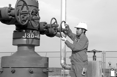 今年以来,华北油气分公司东胜气田立足天然气勘探开发主阵地,依托地质工程一体化,高质量、快节奏推进天然气增储上产工作,截至10月11日,累计产气突破15亿立方米。图为东胜气田员工查看井口设施和生产参数。 闫志洪 摄