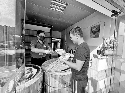 10月18日,浙江绍兴石油诸暨西亚加能站售卖地方特色小吃“岭北盐焗鸡”,这是浙江石油首次在加能站引进特色小吃。为满足客户需求,浙江石油丰富加能站服务业态,精准选点开展特色小吃项目,采取“线上外卖+门店提货”销售模式,为客户提供快捷的服务。图为客户购买“岭北盐焗鸡”。 寿琳玲 摄