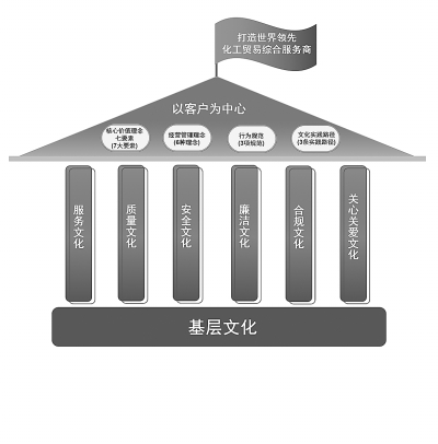 熊文晋 化销华北分公司深耕化工产品市场19载,紧扣“打造世界领先化工贸易综合服务商”企业战略,大胆尝试和创新企业文化深植落地的路径、方法和措施,持续深化“以客户为中心”的文化内涵,以企业文化软实力助推公司迈向高质量发展新征程。公司先后荣获“2016~2017年度企业文化建设优秀单位”“改革开放40年中国企业文化优秀单位”“全国企业文化建设示范单位”等多项称号。 打造“1+6+N”体系,明确企业文化建设路径 在19年的发展过程中,化销华北持续深化“以客户为中心”的文化内涵,系统构建以1套企业文化实践指南、6项专项文化、N个基层文化为主要内容的“1+6+N”企业文化建设体系,并精心设计以“房屋”为造型的企业文化建设体系模型,助力公司更好地适应市场竞争,持续推动价值创造。 模型中的“旗帜”,即“打造世界领先化工贸易综合服务商”的企业战略,是公司立足长期生存和发展需求做出的全局性、长远性谋划和决策,为公司一切经营活动指明方向。 模型中的“屋顶”,即“以客户为中心”的企业文化内涵,是从公司企业文化源起和公司主责主业出发,框定公司企业文化建设的整体结构和实践路径,是打造“世界领先化工贸易综合服务商”的重要支撑。 模型中的“大梁”,即核心价值理念7大要素、6种经营管理理念、3项行为规范及3条文化实践路径,用于固定和承托企业战略。 模型中的“立柱”,即服务文化、质量文化、安全文化、廉洁文化、合规文化及关心关爱文化6项专项文化,是以一体化思维推动市场经营、客户服务、安全环保、廉洁建设、风险防控、员工关爱等工作专业化、品牌化的主要抓手。 模型中的“地基”,即各基层网点开展基层文化实践的探索,是推动公司企业文化建设体系在基层深植落地、百花齐放的特色路径。 坚持用好“1”套企业文化实践指南,推动企业文化深植落地 该公司坚持以企业文化实践指南为指导,将企业文化建设融入公司经营管理各领域、各层级,汇聚起推动企业高质量发展的整体合力。 坚持上下贯通,全员参与。成立公司企业文化建设领导小组,由公司一把手领衔、党委宣传部牵头、相关条线和职能机构负责人全员参与,形成上下联动的组织保障。统筹用好企业文化建设资源,完善评估及激励机制,将企业文化建设工作考核纳入公司一体化管理体系,明确考核评价标准,强化考核结果运用,切实增强企业文化建设执行力。 坚持党建引领,实干担当。坚持加强党建对企业文化建设工作的指导,持续深化主题实践、党员示范岗创建、党员立项攻关等先锋工程载体建设,以“两个作用”引领带动全体员工积极投身企业文化建设实践。 坚持一体推进,深化融合。坚持把市场营销、安全运营、风险防控等中心工作与企业文化建设工作一体推进,切实将“软”文化转化为“硬”支撑。2020年以来,围绕一体化管理体系,该公司先后修订多项业务工作制度和流程,不断提升公司制度、流程与企业文化理念的匹配度。 坚持抓好“6”项专项文化建设,不断丰富企业文化内涵 该公司坚持以“各自领域发挥作用”为原则,按照“以专项文化引领专业工作”的思路,持续抓好专项文化建设。 精心制定专项文化建设方案,扎实推进安全、廉洁、质量、服务、合规及关心关爱6项专项文化建设。各专项文化建设责任部门既牵头抓好专项文化的宣传贯彻,又坚持把专项文化建设融入市场经营、廉洁建设、客户服务、安全环保、风险防控、员工关爱等各项具体工作和相关制度流程,让优秀的专项文化成为专业工作的亮丽名片。例如,合规管理部加强合规文化建设,坚持加强交易对手资信、货权、授信等风险管理,确保业务合规、风险可控。 坚持做好“N”个基层文化建设,培育“根深叶茂”发展沃土 该公司鼓励各单位以中国石化核心价值理念为统领,在公司企业文化建设体系框架下,探索提炼具有自身特色的基层文化,持续厚植文化底蕴。 各单位在广泛征集员工意见的基础上,结合本单位在地域、团队等方面的特点,纷纷提出特色鲜明可操作性强的文化建设方案。例如,齐鲁经营部以刘风凯劳模创新工作室为主要载体,提出以劳模精神为主要内涵的奋斗文化,深入总结在关爱员工成长、关心员工工作生活等方面的做法,加强关心关爱文化建设,探索打造奋斗与关爱并重的特色基层文化。