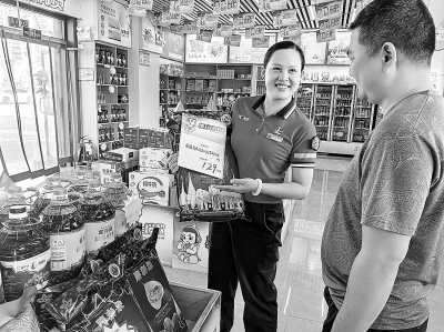 进入四季度以来,广西石油抢抓增量创效时机,大力拓市扩销,积极布局氢电等新兴业务,持续巩固做大成品油、天然气和易捷服务,提升企业核心竞争力,全力冲刺全年目标任务。图为10月23日广西石油钦州二桥加能站员工向客户介绍易享节促销商品。 翟恒芳 摄 李晓敏 赵郸宁 文