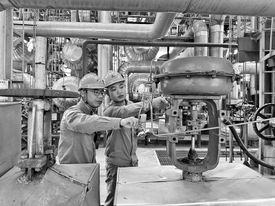 今年以来,海南炼化炼油二部为抓实抓细青工培训,大力实施“一人一策”培训。他们为青年员工做好职业规划,通过“老带新、师带徒”的模式,结合岗位特点和个人特长制订培养计划,为青年员工成长聚力赋能。图为11月8日,导师曹海锋(左)在现场为徒弟谭远全讲解调节阀结构。邱元广 摄