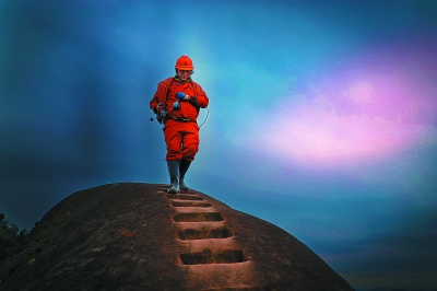 地球物理公司 杨擎宇 物有象,探无疆。在南方山地作业的物探队员踏着晨曦出征。随着技术发展,这种笨重的有线施工将被无线节点作业取代。