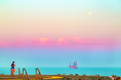 胜利油田 姚世斌 在胜利油田海上平台,一名工休的员工就这样静静地眺望着另一处平台,独享这一份宁静的时光。