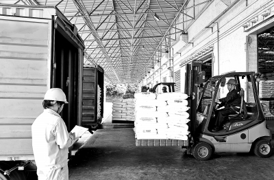 广州石化统筹抓好全链条优化,强化稳量扩销,加快树脂产品出厂,全力推进产销一体联动、协同创效。图为11月22日员工将聚苯乙烯产品装车出厂。曾文勇 摄