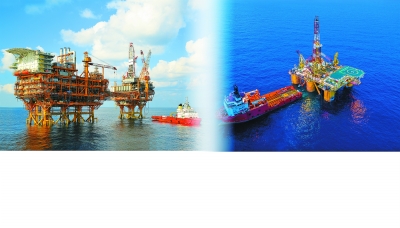 上海局东海合作区某生产中心平台。孙芳良 摄 上海局勘探四号平台在海上作业。刘徐翔 摄