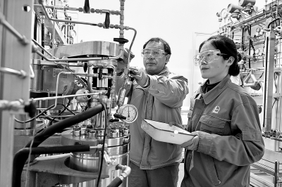 12月以来,北化院科研团队围绕镇海炼化等企业产品质量提升需求,针对自主研发的球形聚丙烯HR催化剂性能升级开展深入探究。该催化剂助力企业开发了一系列性能优异且绿色环保的高模量聚丙烯树脂,目前已应用于汽车、耐热家电、高铁材料、食品包装等领域,成为中国石化合成树脂高端化的突破口。图为12月12日,科研团队开展超高氢调敏感性催化剂的聚合评价试验。本报记者 胡庆明 摄 潘亚男 文