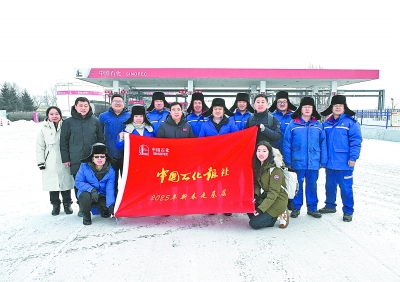 ▲2月7日,本报记者方忠于(二排左二)、于淼(二排左一)、胡庆明(二排左三)、弓天际(二排左四)、田元武(前排左一)、刘心睿(前排左二)前往黑龙江石油蓝天油库,采访春节期间坚守岗位保障亚冬会赛事油品供应的员工。蓝天油库是黑龙江石油保障亚冬会赛事服务车辆用油的重要储存基地。刘 纯 摄