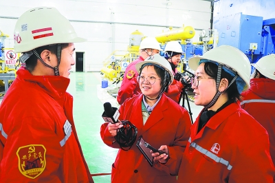 1月13日,本报记者段景文(中)、张千昱(右)在中原油田卫11储气库采访储气库管理中心生产指挥中心副主任刘铁英(左),了解冬季天然气保供情况。 孙 博 摄