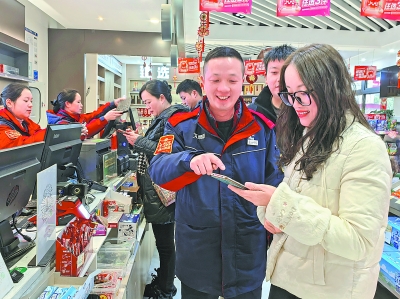 今年以来,贵州毕节石油坚持“以客户为中心”,紧盯市场动态,主动作为,抢抓贵州省政府面向全省消费者发放“多彩贵州欢乐购普惠消费券”契机,结合“年货节”营销,针对不同站点地理位置、不同客户类型、不同消费需求开展精准营销,吸引不少消费者前来中国石化加能站、易捷便利店消费。截至2月17日,带动油品、易捷商品销售额超4000万元。图为毕节石油南部新区加能站内,客户正在员工的帮助下使用消费券、优惠券购买商品。刘 丹 摄