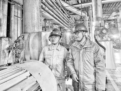 为激发青年员工工作热情,发挥青年主力军作用,上海石化热电部组织青年员工深入生产现场,对关键设备运行情况开展专项检查,为装置安全生产保驾护航。图为2月13日,热电部青年员工对机组设备进行检查。于 芳 摄