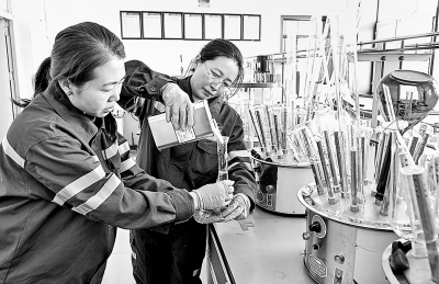 在春耕用油销售旺季来临之际,黑龙江哈尔滨石油在全力保证油料供应的同时做好油品质量管理,严格执行质检标准,提高质检人员业务技能水平,优化质检操作流程,确保农民用上高质量的“放心油”。图为近日蓝天油库质检人员对油品进行质量化验。本报记者 胡庆明 摄 张丽丽 文
