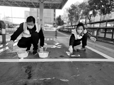 为全面提升加能站站容站貌,安徽淮南石油近日组织30余名党团员,分批赴重点站点开展“划线帮扶”专项行动,通过场地标线翻新、环境整治等精准帮扶,切实为基层减负,优化客户体验。图为3月4日,淮南石油党员在加能站开展地面标线施划作业。骆旻慧 摄