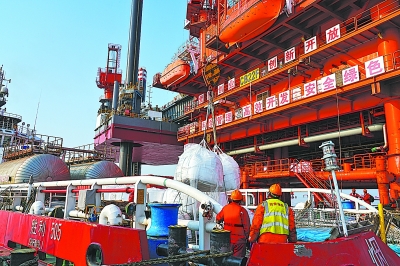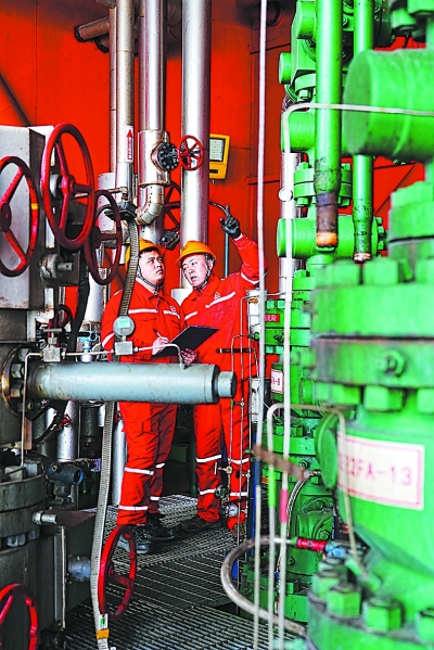 张 灿 图/文 立春之后的渤海湾,海风一改冬日的凛冽,裹挟着一丝温润的气息,轻柔地穿梭于百余座橘红色的采油平台间,将海上平台的风向标吹得悠悠飘扬。 从码头乘船出发,历经约1小时的航程,便能抵达位于这片海域的埕北22F平台。 埕北22F平台是胜利油田海上第一座也是目前唯一的化学驱平台。平台共有56口采油井与注聚井,其中22口化学驱注入井已连续注聚生产1500多个日夜。 驻守在这座平台上的,是海洋采油厂平台管理主管师赵峰与他的同事们。 赵峰,一位在大海上坚守了30年的老石油人,见证了这片海域的变迁。从早期的船舶拉油,到第一座无人值守平台投用,再到如今埕北22F平台化学驱在海上油田结出“胜利果实”,每一个重要阶段都有他的身影。 3月1日清晨,平台班前会上,赵峰神情专注地安排着一天的工作:“今晚大风降温,咱们白天得把整个注聚流程的电伴热带和易冻堵点再仔细排查一遍。另外,胜利505船舶今天要来平台补充药剂,大家都打起精神来。” 一场大规模雨雪寒潮即将来袭,气温将从近20摄氏度骤降至最低零下5摄氏度。赵峰深知,这巨大的温差会给整个化学驱系统带来严峻挑战。 早饭过后,赵峰带着徒弟王建业来到工艺区。王建业是2023年新入职的大学生,经过几次调岗轮训后定岗在平台还不到半年。 相较于别的采油平台的工艺区,这里的设备布局更为紧凑。三台蓝色的注聚泵整齐排列在甲板上,发出震耳欲聋的机械轰鸣声。 “看到这些压变短节了吗?这些都是易冻堵点,每个环节都得检查到位,尤其是风口位置,还得做特殊防护。”赵峰一边耐心地向王建业讲解,一边带着他在注聚设备和油井之间仔细排查保温情况。师徒二人穿梭在设备间,不放过任何一处可能存在隐患的角落。 当两人将所有检查项点检查完毕时,已至正午时分。 此时,胜利505船舶满载着100多吨化学驱药剂缓缓抵达平台。简单用过午饭后,他们便迅速投入药剂吊装工作中。 平台工程师刘民身手敏捷地爬上10米多高的吊机,熟练地操作着设备。“每吊药剂有两吨多重,除了我操作吊机,还需要5个人协同配合才能完成吊装任务,一次药剂吊装通常得持续四五个小时。”刘民介绍道。 像这样的药剂吊装工作,他们平均7天就要进行一次,若遇上连续恶劣天气,一周甚至要进行两次药剂补充。 在过去的4年多时间里,他们记不清究竟吊了多少船药剂,但他们清楚地记得,凭借着坚守与付出,整个海上化学驱系统始终运行平稳。自2022年7月第一口油井开始收效,到如今注聚见效区块日产油1000多吨,综合含水下降12个百分点,埕北22F平台已然成为海上控水增产提效的关键发力点,为海上油田的高效开发贡献着源源不断的力量。