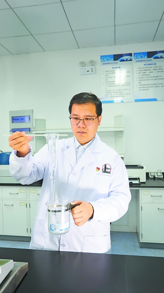 于 佳 姜祖明的家人至今说不清楚他到底干的是什么工作。每当家人追问时,他也难以用三言两语讲明白。但他心里清楚,在那间摆满瓶瓶罐罐的实验室里,那些看似不起眼的白色粉末,似一把把神奇钥匙,为油藏难题解锁。 2010年,姜祖明还是个一心钻研高分子材料的在读博士。第一次踏入胜利油田,看到这里化学驱事业的广阔前景,他激动不已。2013年博士毕业后,他进入胜利油田博士后工作站,自此踏上逐梦征程。 刚起步那会儿,油田急需一种能大幅提高聚合物驱后油藏采收率的撒手锏技术。姜祖明和团队扎进实验室,按照“固液共存”的研发思路,成功研发出了黏弹性颗粒驱油剂。 这种驱油体系就像“小米粥”,注入初期用“米粒”堵住大孔道,让“米汤”进入小孔中驱油,后期“米粒”再变形通过孔隙,把油藏里的油“赶”出来。 这项技术填补了老油田聚合物驱后油藏大幅度提高采收率的技术空白,还获得了中国专利金奖,这也让姜祖明坚定了投身科研的决心。在胜利油田、河南油田等区块应用后,助力特高含水后期老油田经济有效期延长10年。 2021年10月21日,习近平总书记到胜利油田视察,现场听到总书记对化学驱创新给予的高度评价,姜祖明深受鼓舞。 胜利油田有近7亿吨的高温高盐油藏储量,温度超过80摄氏度,矿化度超过3万毫克/升,这在化学驱开发领域被视为禁区。姜祖明知道,这是一块难啃的硬骨头,但他就是要挑战极限。 那段时间,他和团队整天泡在实验室,合成、评价、再合成、再评价,反反复复。可近万次的实验均未达预期,团队士气低落。 偶然间,姜祖明看到墙角的蜘蛛网虽被打断了几根蛛丝,蛛网却依旧完整。他瞬间灵感闪现:若把驱油剂的交联网络构建得如蜘蛛网般致密均匀,驱油剂的强度与耐温抗盐能力是不是能够提升?受此启发,他带领团队成功研发出耐温达85摄氏度的黏弹性颗粒驱油剂,并已在胜采、东辛等采油厂应用,可释放超1亿吨化学驱资源,相当于找到了一个大油田。 胜利油田化学驱经过多年发展,好吃的“蛋糕”越来越少,难啃的硬骨头越来越多。姜祖明和团队立下目标:到2035年,将化学驱应用边界拓展至120摄氏度,构建高温高盐油藏化学驱大幅提高采收率的技术体系。