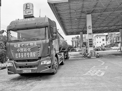 近期,广西多地遭遇干旱。广西石油密切关注旱情,主动对接抗旱用油需求,协调油库增加柴油入库量,将柴油资源向农业农村地区精准投放,派出小油罐车按需配送下乡,全力支持地方政府和群众抗旱减灾,保障民生需求。图为4月22日广西石油抗旱保供专用油罐车把油品送到百色石油田林至高加能站,助力农户灌溉。羽景全 摄 翟恒芳 文