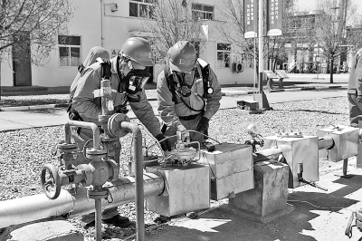 近日,华北油气分公司采气一厂净化队锚定“力求实效”目标,积极开展燃气管线刺漏应急演练,全力防范重大安全风险,提升应对处置各类突发事件能力。图为员工在演练现场检测可燃气管道情况。 王亚旭 摄
