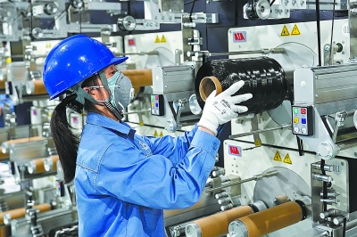 ①镇海炼化员工在乙二醇装置区巡检。何 雯 摄 ②上海石化碳纤维事业部员工检查碳纤维丝束质量。万 敏 摄 ③南方电网应用超纯净聚丙烯膜料生产的电容器。丁超兵 摄 ④中韩石化生产的TPO防水卷材专用料。付 松 摄