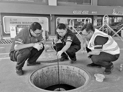 安徽淮南石油以精细化管理为抓手,构建油品损耗防控体系,通过全流程数字化监控与动态分析,降低损耗率。对于异常超耗站点,他们建立 “一站一策” 损耗跟踪机制,由计量专员、设备工程师、零售管理员组成专项工作组驻站诊断,确保损耗率可控、可溯。图为6月18日,安徽淮南石油计量专员在国庆路加能站指导站内员工对油罐损耗进行诊断。葛如俊 摄