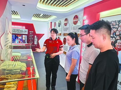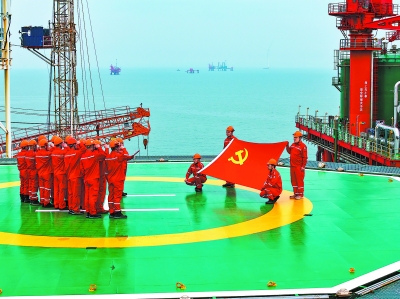 “我志愿加入中国共产党,拥护党的纲领,遵守党的章程,履行党员义务……”连日来,中国石化各企业通过“七一”表彰、重温入党誓词、开展主题党日、参观红色教育基地等多种方式庆祝中国共产党成立104周年。 党旗鲜艳夺目,誓言铿锵有力。中国石化成立四十余年来,始终保持姓党为民的政治本色,一代又一代石化人在党的领导下,以“爱我中华、振兴石化”为己任,全力做好端牢能源饭碗、产业升级、绿色发展、科技创新等各项工作,奋力为推进强国建设、民族复兴伟业作出新的更大贡献。 6月29日,集团公司基层党组织“百千示范提升行动”首批示范点——胜利油田海洋采油厂中心三号平台党支部,开展迎“七一”重温入党誓词活动,用铮铮誓言表达对党的热爱与忠诚。自投产以来,该平台已累计安全生产4000余天、处理外输原油1600余万吨。张 灿 摄 6月29日,中国石化第二批红色教育基地——江西石油瑞金红井加能站红色教育基地内,义务讲解员在站内红色文化墙前为游客讲述红色故事。梁惠雯 摄 张 曦 梁惠雯 文