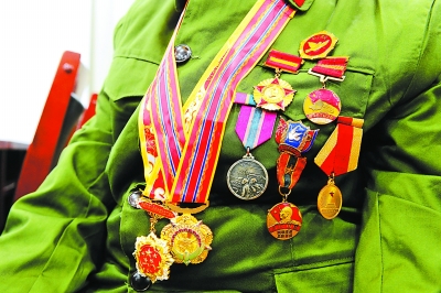 一枚枚勋章映照着刘德福老人的初心。