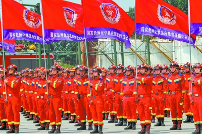 国家危化品应急救援武汉石化队党员突击队以昂扬的斗志全身心投入国家应急演习。