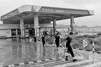 6月26日,贵州黔西南石油贞龙一号加能站突遭暴雨袭击,大量雨水漫入站内场地。贞丰县公司第一时间启动应急预案,迅速调集周边加能站站经理支援,并紧急调配2立方米泥沙用于抢险。现场人员分工有序,开挖排水沟渠引流雨水,用沙袋对操作井进行围堵防护,清扫积涝区域。经过两小时的紧急处置,险情被成功排除,加能站恢复安全运营。图为员工用沙袋对加能站进行围堵防护。 资雪梅 摄 陆 顺 文
