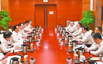 本报讯 记者霍良振报道:7月14日,集团公司党组书记、董事长侯启军在总部会见海南省委书记、省人大常委会主任冯飞一行,双方就进一步深化合作进行座谈交流。 集团公司党组成员、副总经理吕亮功,海南省委常委、常务副省长巴特尔,副省长顾刚参加会见。 侯启军对冯飞一行来访表示欢迎,对海南省委、省政府长期以来对中国石化的大力支持表示感谢。他表示,中国石化深入学习贯彻习近平新时代中国特色社会主义思想和习近平总书记视察胜利油田、九江石化重要指示精神,坚决扛牢保障国家能源安全政治责任,积极服务和融入地方经济社会高质量发展。中国石化将充分发挥自身优势,推动驻琼企业和相关业务高质量发展,持续深化双方务实合作,为海南自由贸易港、“清洁能源岛”建设作出更大贡献。 冯飞感谢中国石化长期以来对海南发展给予的大力支持,并介绍海南经济社会发展情况。他指出,当前,海南深入学习贯彻党的二十届三中全会精神和习近平总书记在听取海南省委、省政府工作汇报时的重要讲话精神,努力把海南自由贸易港打造成为引领我国新时代对外开放的重要门户。希望双方进一步拓展合作领域,实现互利共赢。海南省委、省政府将一如既往做好服务保障工作,为中国石化在琼业务发展创造良好环境。 图为会见现场。 本报记者 胡庆明 程 阳 摄影报道