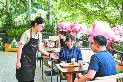 上海石油第一加能站员工为顾客提供易捷咖啡服务。