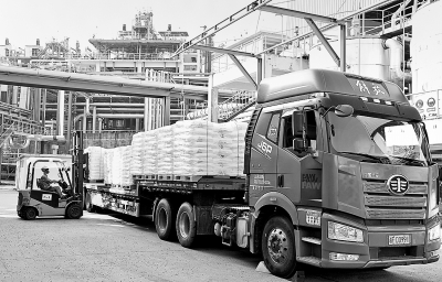 今年以来,湖南石化聚焦客户需求,加强科技攻关,优化生产工艺,对SEPS(氢化苯乙烯-异戊二烯共聚物)产品增稠、抗剪切稳定性能进行提升,受到客户好评。上半年,热塑橡胶日产量800多吨,实现增产增销。图为7月11日橡胶部热塑橡胶片区,当班员工将热塑橡胶产品装车发运。 本报记者 彭 展 摄