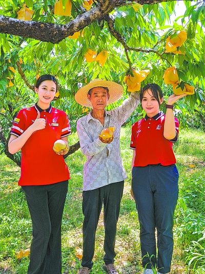 7月8日,江苏无锡石油积极响应助农号召,组织青年志愿者走进阳山水蜜桃基地,帮助果农完成采摘、筛选与装箱、搬运等工作。惠欣怡 摄